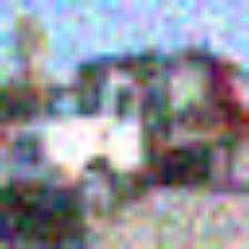 CIFAR-10-C Sample Image (Truck corrupted with Gaussian noise)